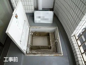 ベランダの古くなった避難ハッチ。「避難ハッチ交換」のタイミングです。