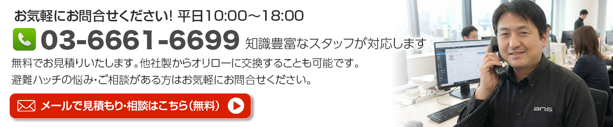 錆びて古くなった避難ハッチの交換を検討していたところ、ANSのサイトを見つけて相談。問い合わせ後すぐに返信が来て、導入メリットやオリローハッチの特徴をわかりやすく説明してくれました。工事も素早く丁寧で、仕上がりには非常に満足しています。このハッチは開口部が広くとれるスライド式はしごなので他社よりも安心感があり、操作感・耐久性ともに優れていると感じました。対応のスピードと品質の高さに感謝しています。